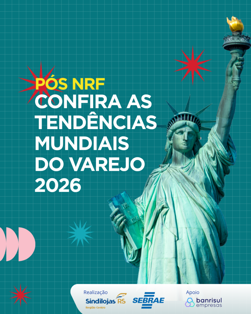 O Sindilojas Região Centro, em parceria com o Sebrae Região Centro, promove no dia 31 de março, mais uma edição do Pós-NRF, iniciativa estratégica voltada à atualização e qualificação de empresários e profissionais do varejo de Santa Maria e região. O evento tem como principal objetivo traduzir as tendências globais apresentadas na NRF Retail’s Big Show, o maior evento mundial do setor varejista, para a realidade do mercado gaúcho, com foco em aplicabilidade prática e geração de resultados.